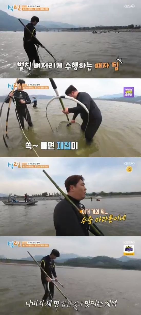 이날 멤버들은 유선호, 딘딘의 유키드 팀과 나머지 4명의 추격자 팀으로 나뉘어 재첩 조업이 걸린 추격전을 펼쳤다.