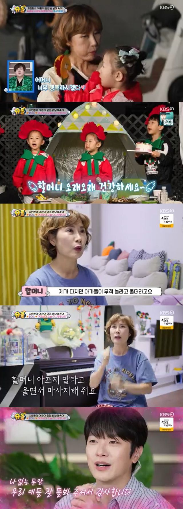 어머니는 "아이들이 할머니랑 있는 시간이 많으니까 제가 조금만 다쳐도 엄청 울더라. 그게 참 감동이었다. 혼자서 손주 셋 키우는 보람 있구나 싶었다"며 마음을 전했다.