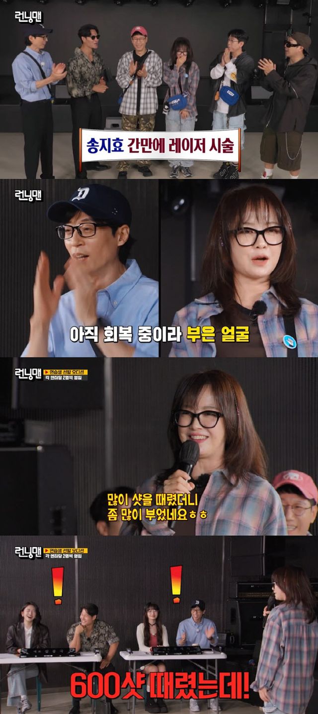 유재석은 “본인도 당황해서 ‘오빠 저 어떡하죠’라고 하더라”고 웃었고 김종국은 “괜히 쓸데없는 얘기 나올까봐 저희가 먼저 말씀드린다”고 송지효의 레이저 시술을 밝힌 이유를 설명했다.