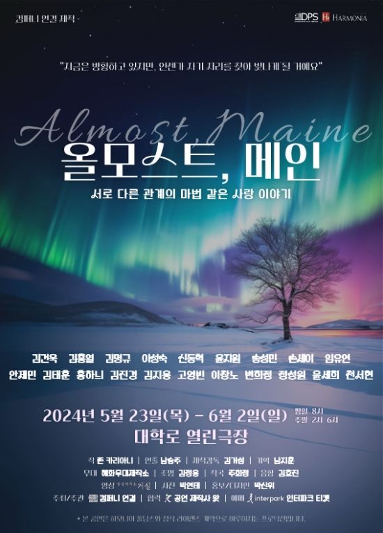 한편, 연극 '올모스트, 메인'은 5월 23일(목)부터 6월 2일(일)까지 만나볼 수 있다. 공연 시간대는 평일 8시, 주말 2시&6시이며, 인터파크 티켓을 통해 예매할 수 있다.
