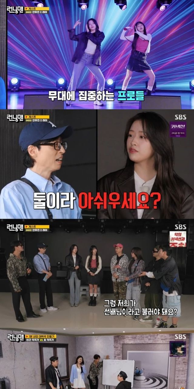 지난 19일 방송된 SBS '런닝맨'에는 아이브 안유진, 레이가 게스트로 출격, '1위를 해야 해' 레이스로 꾸며졌다. 이날 엔터테인먼트 수장이 된 유재석, 김종국 팀으로 나뉜 가운데 레이와 안유진이 각 팀에 합류했다. 안유진과 레이는 데뷔가 확정된 아이돌 선배로서 '런닝맨' 멤버들의 데뷔 가능성을 평가해 눈길을 끌었다.