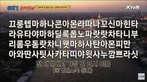 저 뜻은 “신들의 수도, 위대한 도시, 불멸자(신)이자 에머랄드 부처, 위대한 인드라 신의 아유타야(난공불락), 아홉 개의 보석을 지닌 광명의 세계, 왕의 위세로 가득찬 행복의 도시, 위대한 장소, 환생한 신이 다스리는 하늘 위의 땅의 집을 닮은 왕궁으로, 제석천의 허락에 비슈바카르만(विश्वकर्मा, 건축의 신)이 만든 아바타(화신)가 사는 비마나(하늘을 나는 수레)”