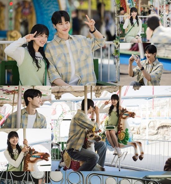 이어진 스틸에서 두 사람은 회전목마 앞에서 서로의 사진을 찍어주고, 손가락으로 브이(V)를 그리는 커플 포즈를 취하며 달달한 인증샷을 남기고 있다. 이와 함께 회전목마를 타는 류선재와 임솔의 모습이 동화처럼 화사한 가운데 임솔의 생일날 잊지 못할 추억을 남기고 있는 두 사람의 앞날에 꽃길이 펼쳐질 수 있을지 궁금증을 증폭시킨다.