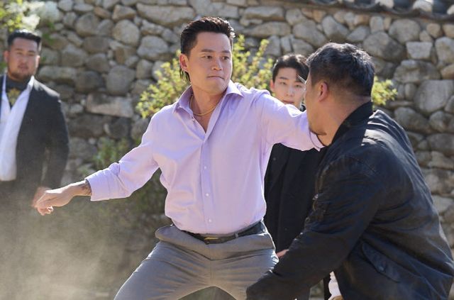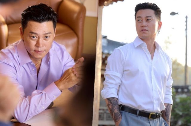 특히 올백으로 넘긴 머리와 이마에 드러난 상처, 풀어헤친 셔츠 단추와 근육질 팔을 둘러싼 문신 등은 조폭 2인자 김득팔의 날카로운 기세를 느끼게 한다.