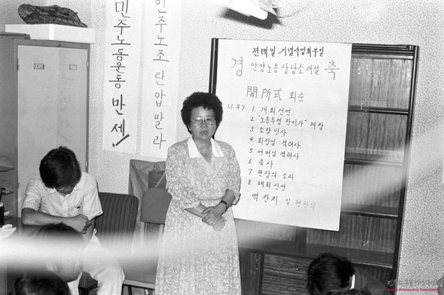 전태일 기념관에 개설한 안양노동상담소 개소식 진행하는 이소선
