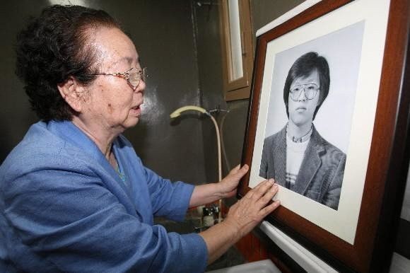 박종철 기념관에서 박종철 열사 사진 바라보는 이소선