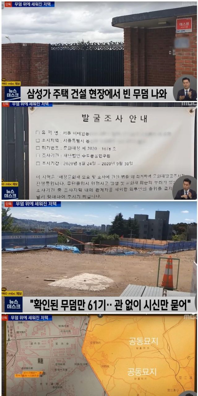 과거 일본인들 주택지역인데 삼성가가 구매 -> 공사중 마당에서 무덤나옴(알고보니 과거 공동묘지 지역) -> 문화재청이 발굴한다고 2년동안 공사 못함