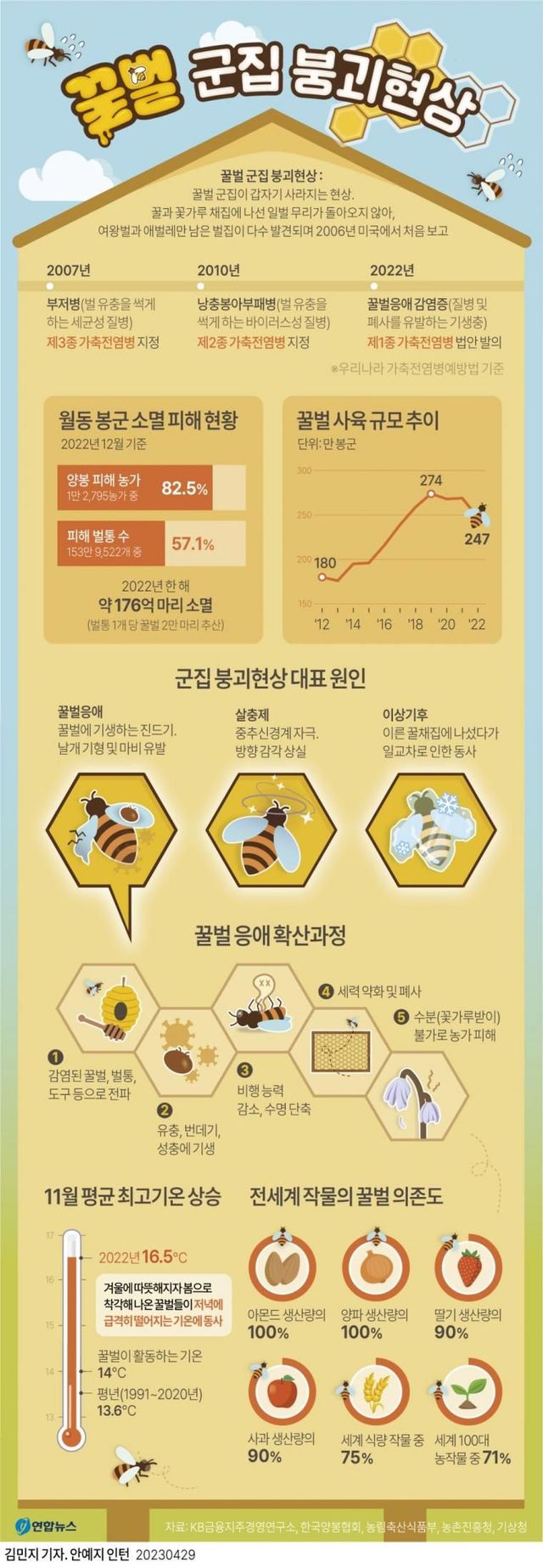 이상기후와 해충 응애의 확산 등으로 인해 꿀벌 군집이 붕괴하는 사례가 늘고 있다.