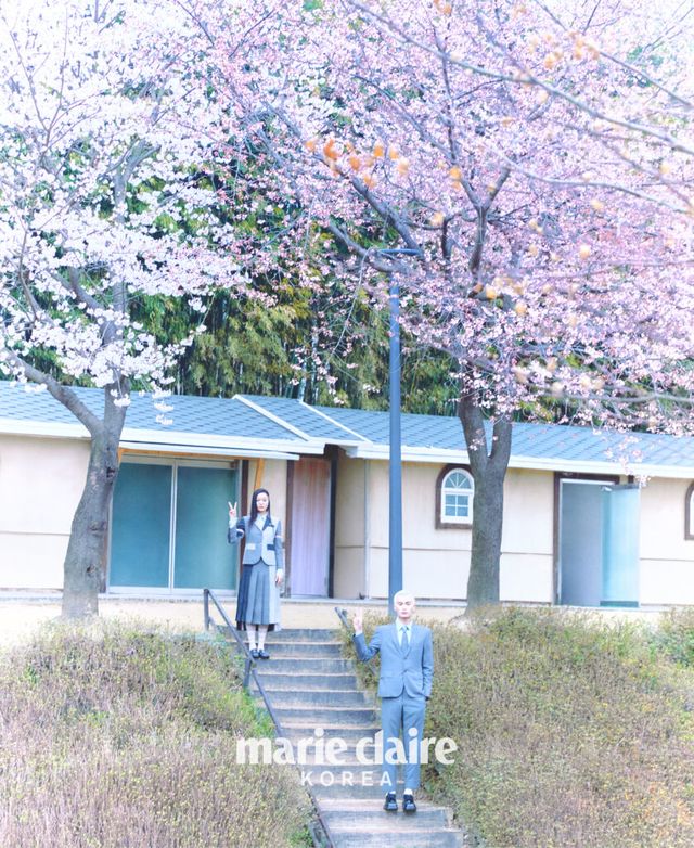 소이가 입은 그레이 재킷, 옥스퍼드 셔츠, 플리츠스커트 모두 가격 미정