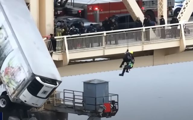 이날의 영웅은 안전벨트를 매고 그녀를 구하기 위해 내려온 소방관 브라이스 카든이었다. 그는 그녀를 안전벨트에 묶고 매달린 트럭에서 그녀를 끌어냈다. 그녀의 무사 귀환에 숨을 죽이고 구조 활동을 지켜보던 모든 이들의 박수가 터져 나왔다. 다행히 그녀에게 큰 부상은 없었다.