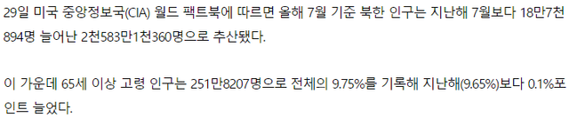 북한은 여느 공산주의 국가들이 다 그렇듯이 통계를 조작하고 있는 중이고, 인구도 예외는 아님.