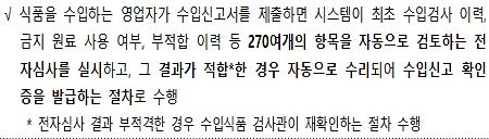 이를 통해 영업자는 식품 수입 시 시간과 비용을 대폭 절감할 수 있게 되고, 소비자는 신속하게 식품을 공급받을 수 있게 된다.