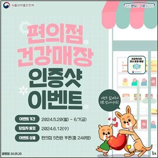 또한, 편의점 내 건강먹거리 코너 방문 인증샷을 식약처 블로그, 인스타그램 및 페이스북을 통해 게시하면 추첨을 통해 소정의 상품을 증정할 계획이며, 건강먹거리 코너를 운영하는 편의점에 대한 세부적인 정보는 식품안전나라 누리집*에서 확인할 수 있다.