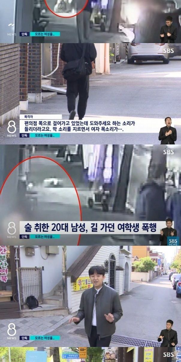 하의를 입지 않고 있던 A 씨는 무차별 폭행을 한 후 사거리 방향으로 뛰어갔습니다.