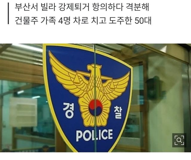 28일 경찰에 따르면 A(50)씨는 전날 오후 3시30분께 부산 기장군의 한 빌라 앞 길거리에서 자신이 살던 빌라 건물주 B씨 부부와 아들, 며느리 등 B씨 가족 4명을 자신의 차량으로 들이받고 도주한 혐의(살인미수)를 받는다.