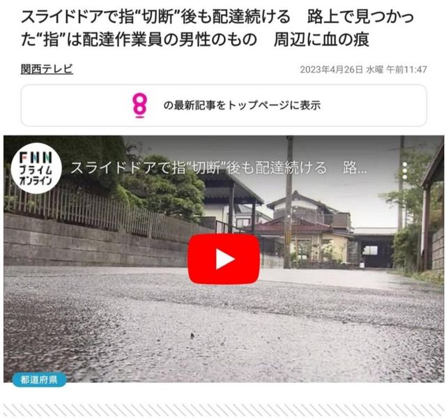 알고보니 이 배달원은 배달중에 자신의 택배차의 슬라이드 도어에 손가락이 껴버려서 절단되버린 거였음 ㄷㄷㄷ