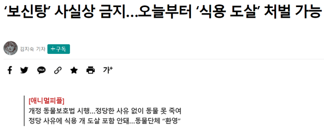 동물보호법 -> ‘정당한 사유’에서 식용도살은 제외