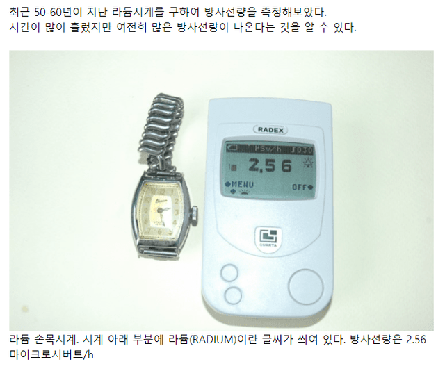 현재도 오래된 시계 수리하다가 방사능에 노출되는 사례가 종종 있다고..