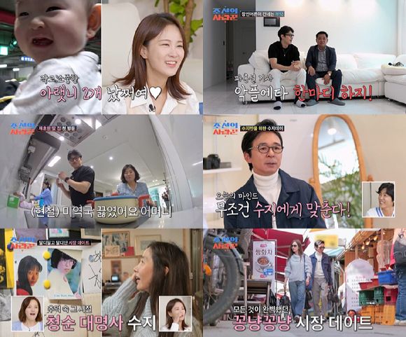 이곳에는 도시에서 보기 힘든 제비집부터, 볏짚으로 묶은 계란꾸러미까지 레트로 감각이 그대로 살아있어 감탄을 불러일으켰다. 옛날 문구류를 파는 곳에 들른 두 사람은 우연히도 '책받침 여신' 시절의 강수지 사진을 찾아냈다.