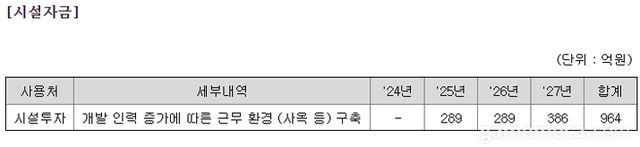 ▲ 시프트업 사옥 등 시설투자 구축 자금 사용 계획 (자료출처: 전자공시)