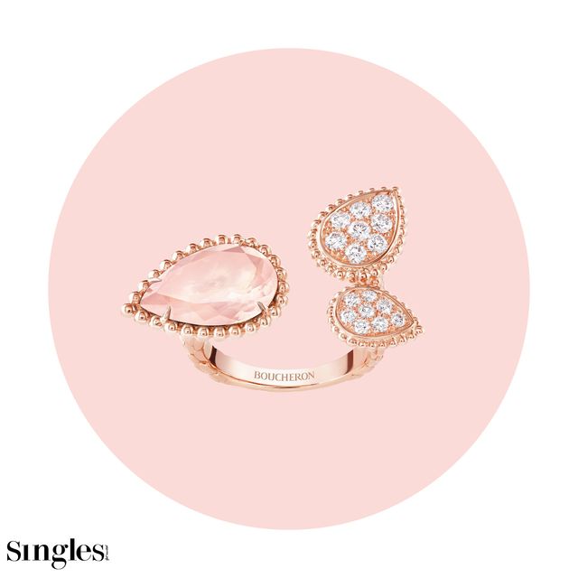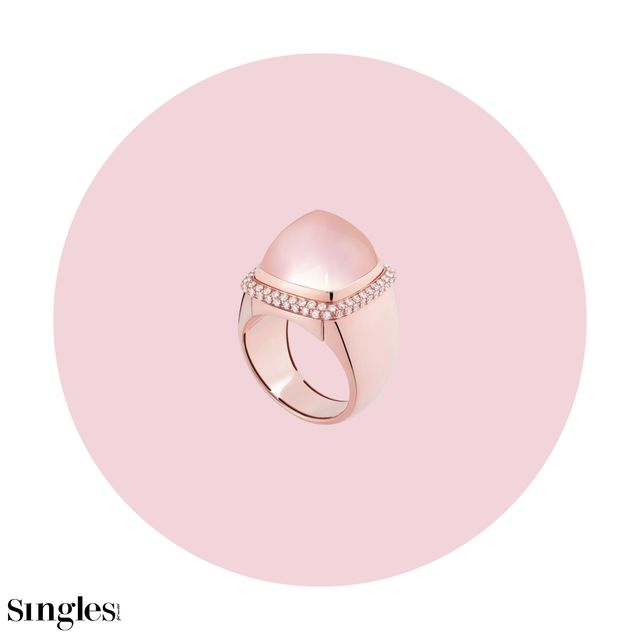 핑크 쿼츠 카보숑을 주축으로 다이아몬드를 더한 빵 드 쉬크르 핑크 골드 링은 1436만원 프레드.