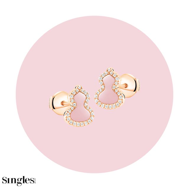 로즈 골드에 다이아몬드를 세팅한 핑크 오팔의 쁘띠 울루 이어 스터드는 318만원 키린.