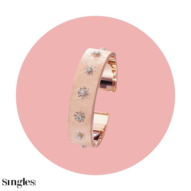 핑크 골드 밴드에 라운드 브릴리언트 컷 다이아몬드로 포인트를 살린 마크리 클래시카 브레이슬릿은 2300만원대 부첼라티.