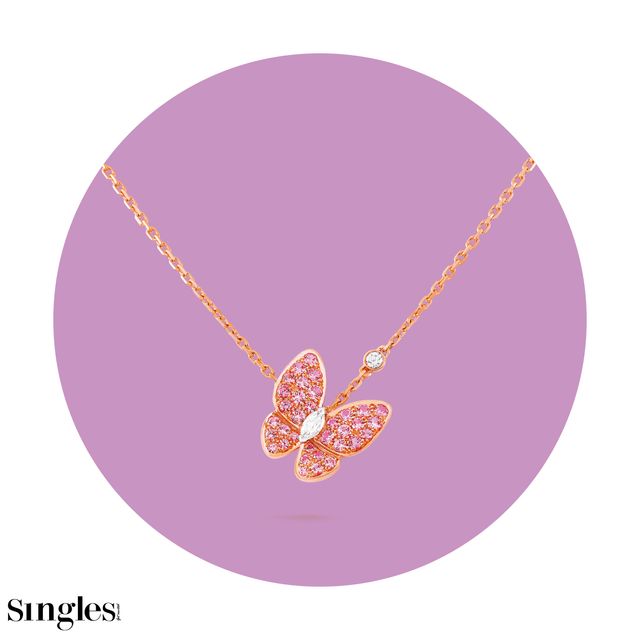 핑크 골드와 라운드 컷 핑크 사파이어로 나비를 형상화한 투 버터플라이 펜던트는 가격미정 반클리프 아펠.