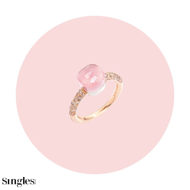로즈 골드에 핑크 쿼츠 7캐럿을 세팅한 누도 핑크 클래식 링은 가격미정 포멜라토.