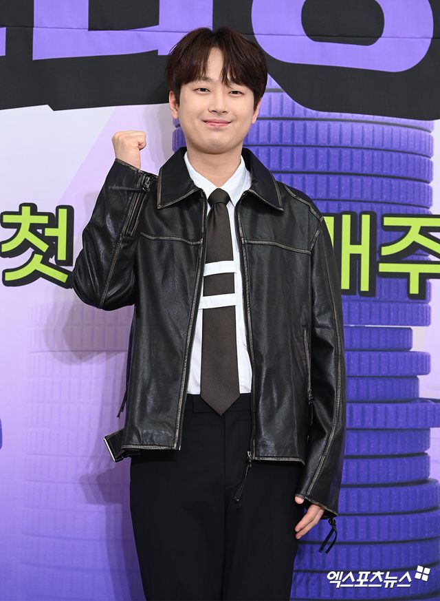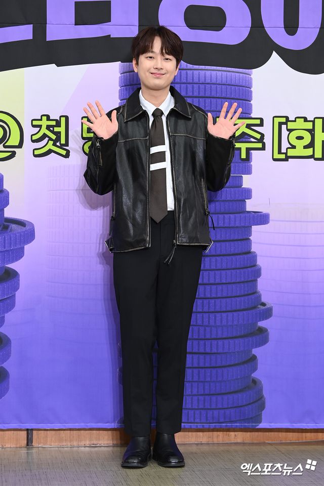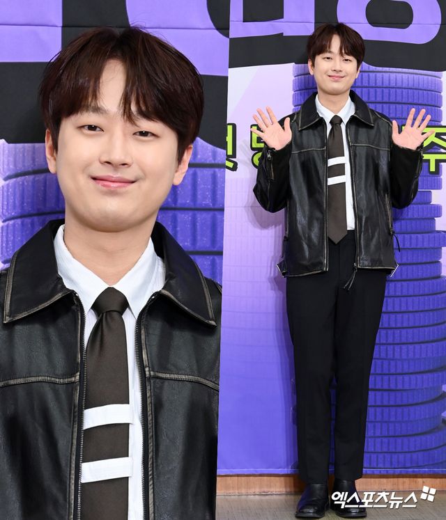 이날 제작발표회에 참석한 가수 이찬원이 포토타임을 갖고 있다.