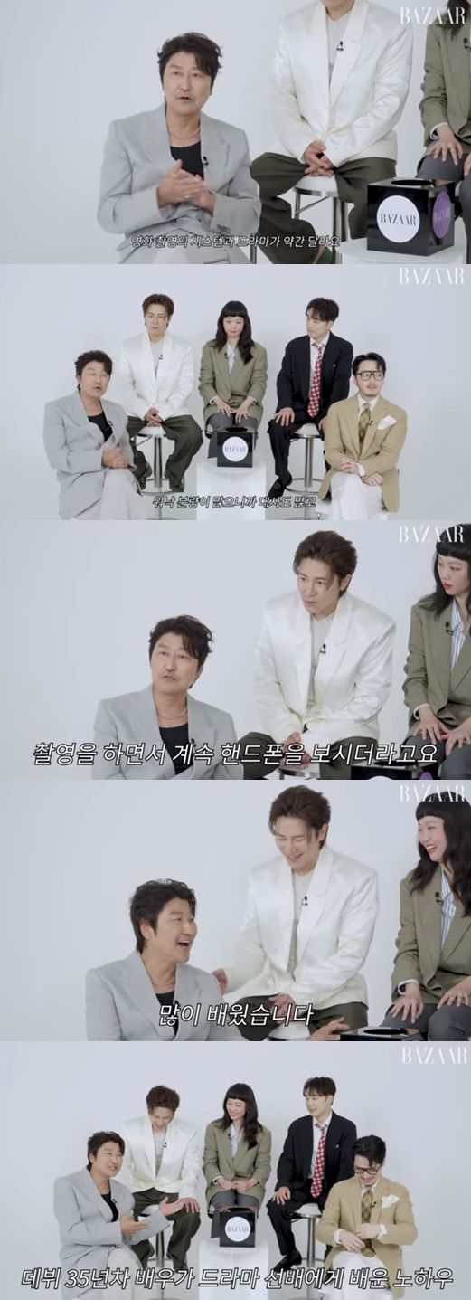 송강호는 "그래서 선배님들이 필요한 거구나 생각했다. 이 드라마 선배님들의 노하우. 그 뒤로 저는 핸드폰으로 대본을 다 찍어가지고 폰으로 본다"라고 밝혔다.
