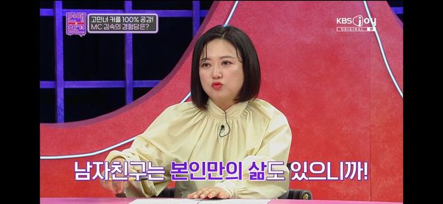 하지만 고민녀는 다시 장거리 연애로 돌아가기를 바랐고 이에 남자친구는 반대하는 상황이라고. 이에 주우재는 “연인이 혼자 설 줄 알면 기대어도 서로 버틸 수 있다”며 고민녀가 혼자만의 시간을 잘 보내는 것을 추천했다. 곽정은은 “인간이 성숙해지는 일련의 과정이 있다. 연인 간의 관계에도 발달 과정이 필요하다”고 고민녀에게 조언했다.