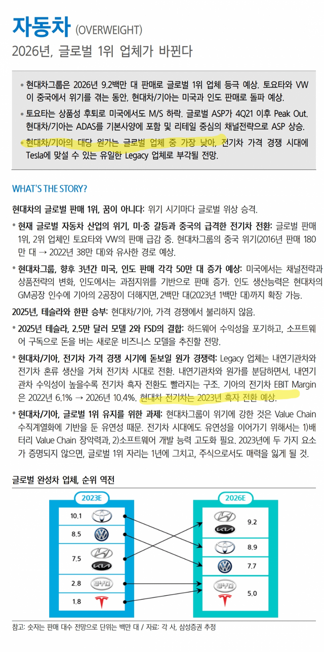 2026년에는 현대기아 전세계 판매량이 도요타를 넘어서고 세계 1위 전망