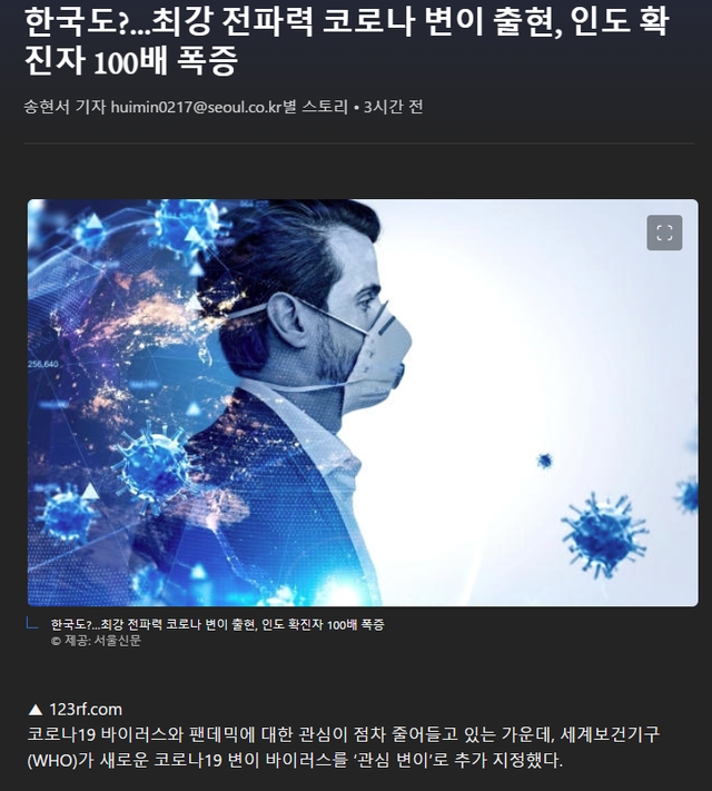 현재는 미국이랑 영국에서도 나오고 있어 단순한 변이구나 라고 생각안하는중