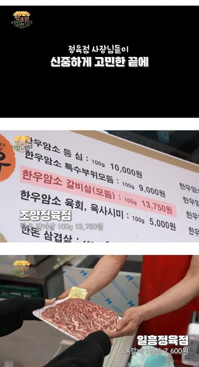 조양정육점 : 한우 갈비살 100g에 13,750원