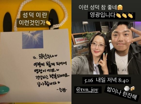 김희선 역시 '밥이나 한잔해'를 통해 '찐팬 모드'를 가동한다. 자신의 인스타그램을 통해 K-POP 인기 아이돌 세븐틴 승관(부승관) 그리고 개그맨 겸 인기 크리에이터 곽범과의 만남을 인증해 두 사람의 출연을 예고했다.