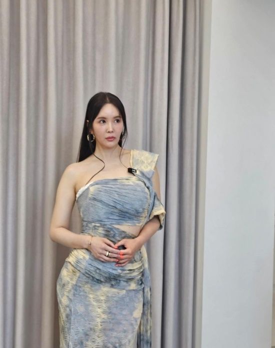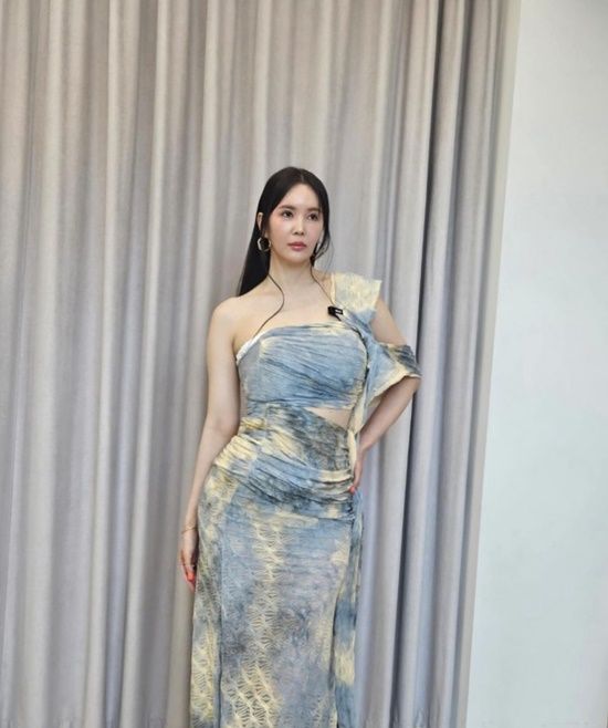 공개된 사진 속 장영란은 파스텔톤의 원숄더 드레스를 입고 숨겨둔 S라인을 뽐내고 있었다.