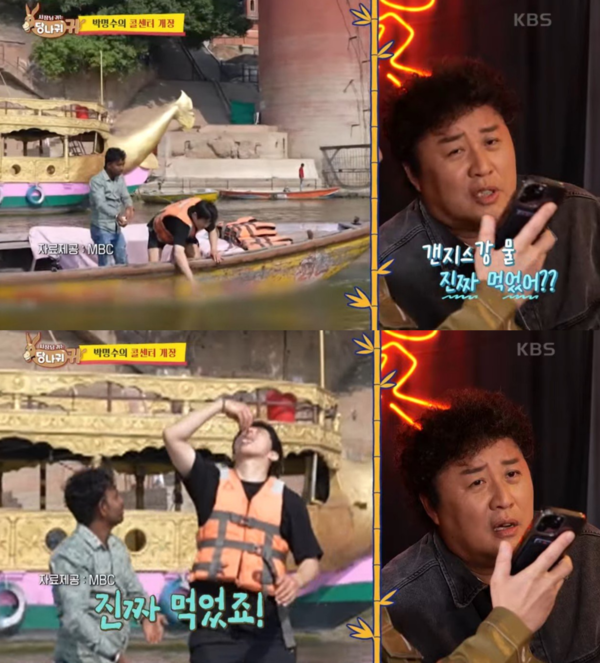 또한 기안84는 "갠지스 강 물 진짜 먹었냐"라는 정준하의 물음에 "네 먹었죠"라고 답 했다. 이에 정준하가 "배 안 아팠냐"라고 묻자 "괜찮던데요"라고 말했다. 이를 들은 정준하는 "그게 대상 가는 길인가보다"라고 말했고, 지상렬은 "쉽지 않지"라고 덧붙였다.
