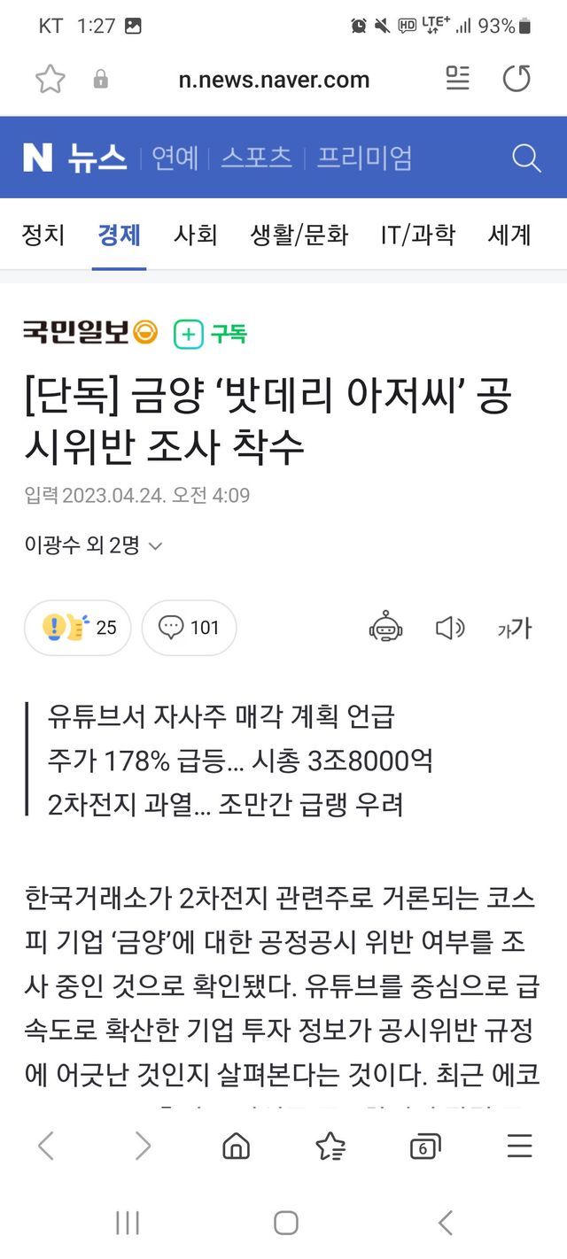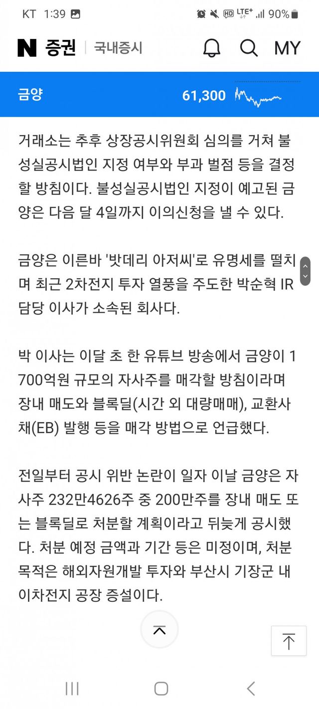 한국 거래소에서 배터리 아저씨 공시규정 위반으로 조사중