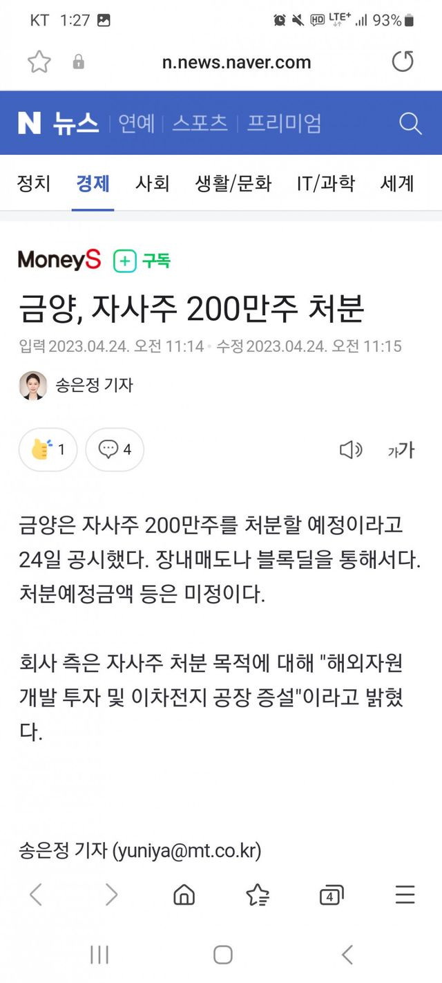 그 와중에 배터리 아저씨가 임원으로 있는 금양은자사주 240만주중에 200만주 처분예정ㅋㅋㅋㅋㅋ