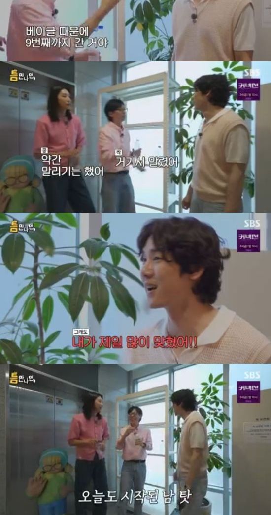 이들은 틈 주인공이 다니고 있는 회사로 향했고, 회사 이름을 본 유재석, 유연석, 김연경은 배달앱 회사인 것을 알고 신기해했다.