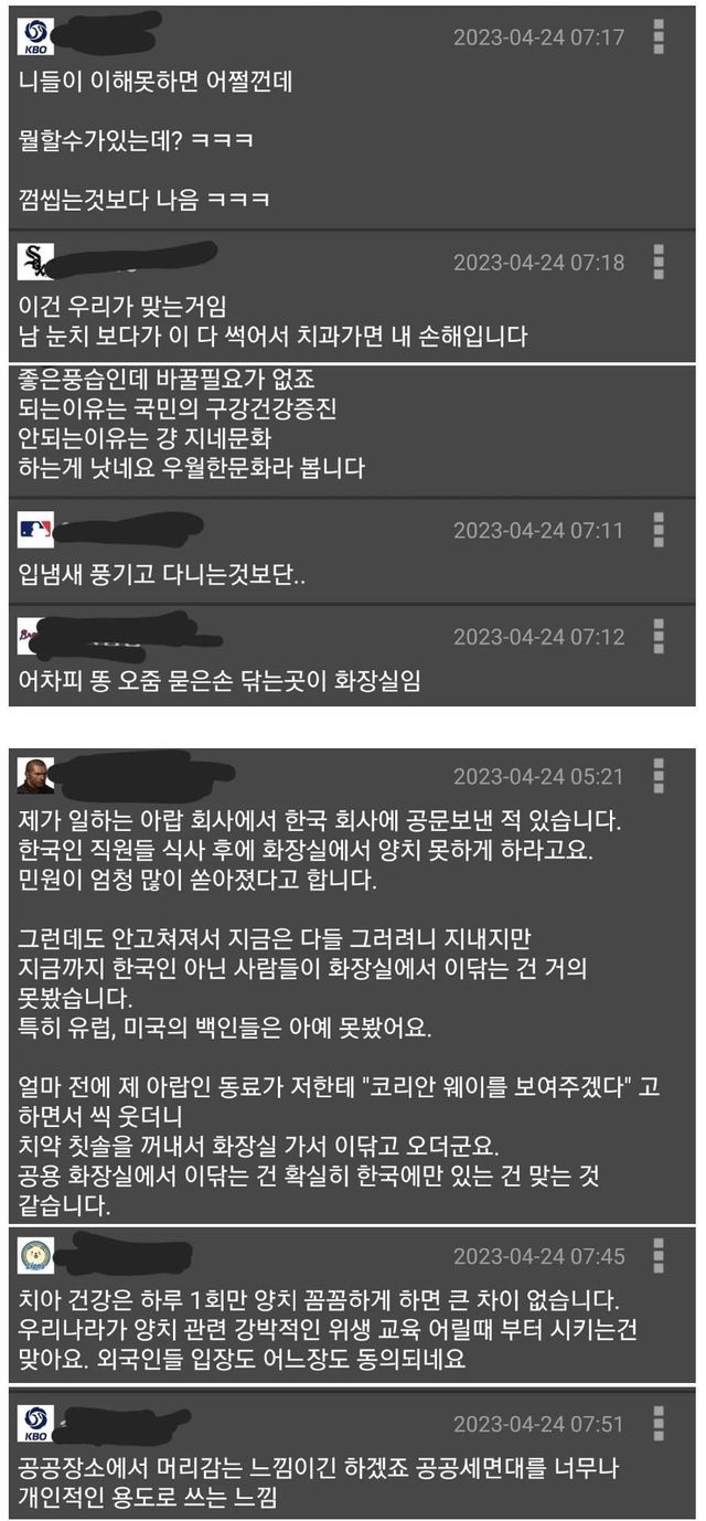 (외국도 물론 하는 사람들도 간혹 있지만 정도의 차이가 확실히 있다는 듯)
