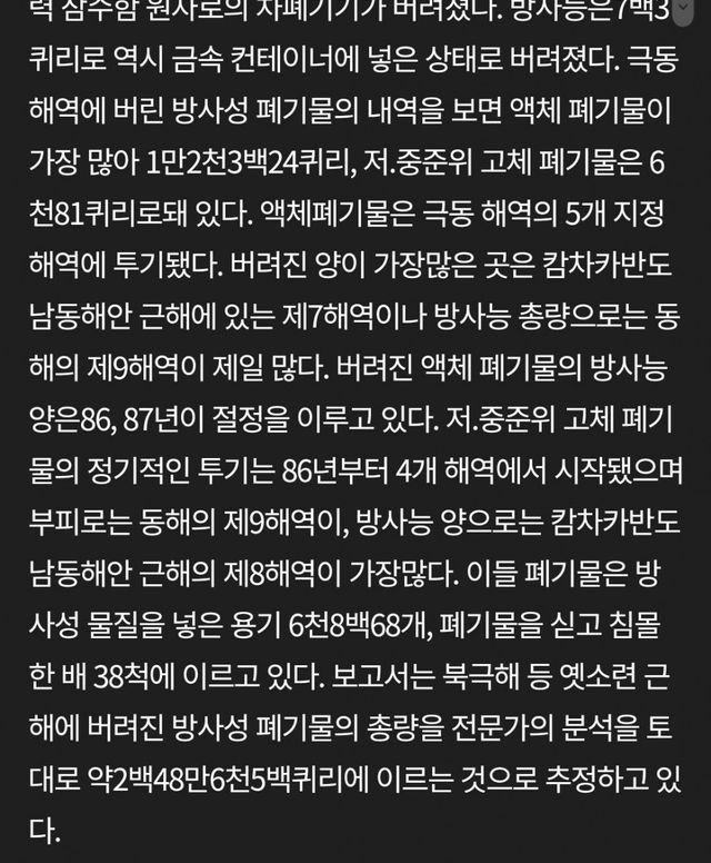 심지어 원자로도 2개나 갖다 버림; 거기에 원자로 차폐기기도 버림