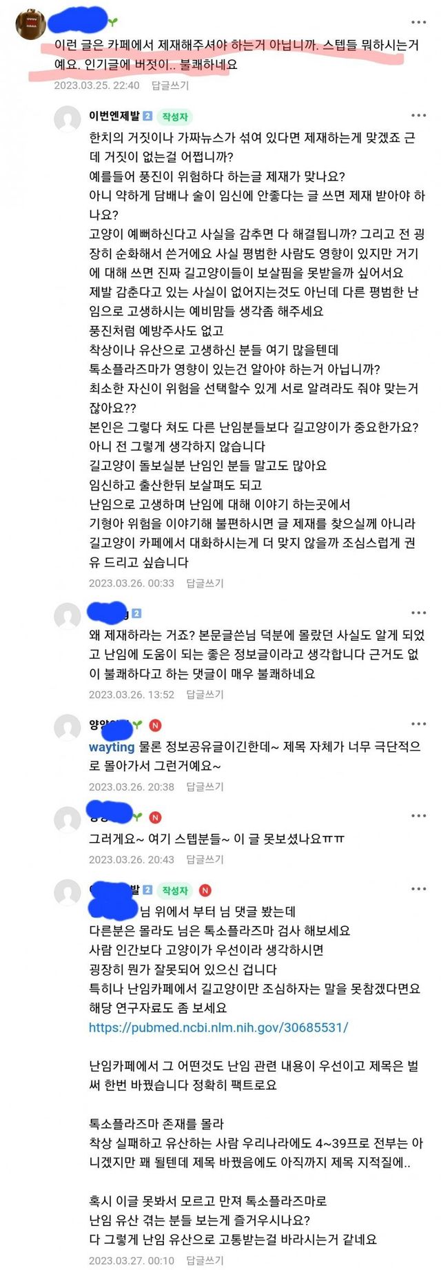 (댓글중에 자기도 유산했지만 길고양이 때문은 아니다란 글까지 올라옴;;)