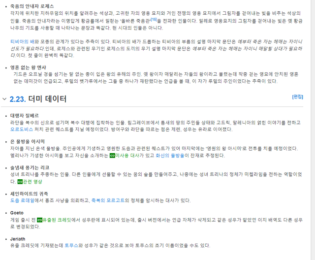 더미데이터는 물론이고 작중에서 출현도 안한 설정 상 등장인물까지 기술되어 있음
