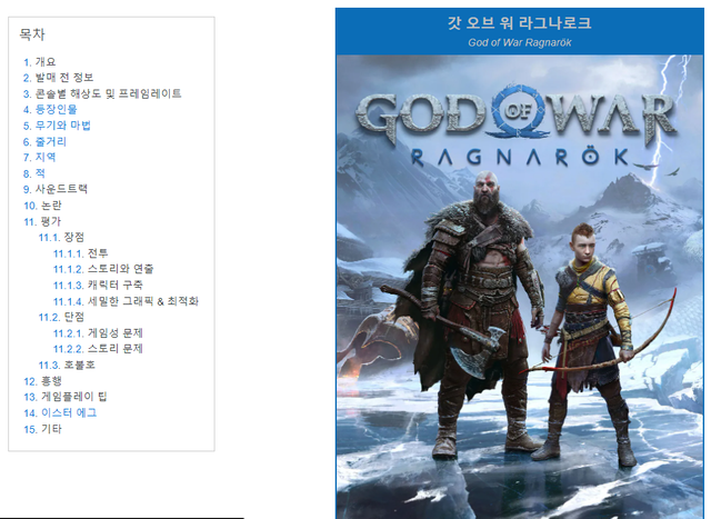 22년 11월 출시한 갓오브워 라그나로크 킹무위키에 등장인물란 존재