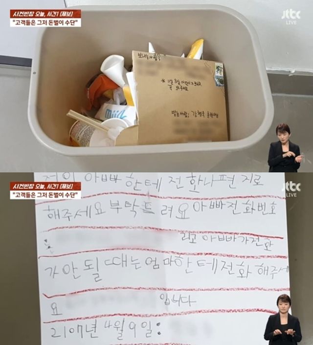 제보자가 공개한 쓰레기통에 버려진 아이들의 편지 / JTBC '사건반장'