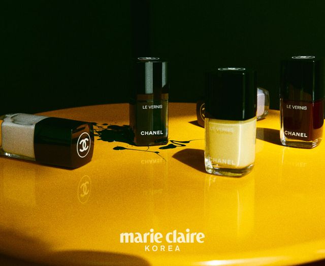 ( 왼쪽부터 ) CHANEL 르 베르니 #111 발레리나 #127 푸규즈 #135 이모텔 #129 오브니 #155 루쥬 느와르. 브랜드의 독자 성분인 까멜리아 세라마이드 포뮬러를 함유해 오래 바르고 있어도 손톱이 편안하다. 라이트 핑크와 딥 블루, 라일락 퍼플, 파스텔 옐로, 다크 초콜릿 컬러까지 폭넓은 색을 갖췄다. 각각 13ml, 4만3천원.