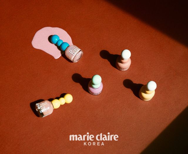 ( 위부터 ) CHRISTIAN DIOR BEAUTY 디올 베르니 #203 파스텔 민트 #100 누드 룩 #796 데님 #853 루즈 트라팔가 #720 이콘. 작약과 피스타치오 추출물을 함유해 네일 케어 효과까지 제공하는 매니큐어. 디올 하우스의 작품에서 영감 받아 다채로운 컬러로 구성했다. 각각 10ml, 4만3천원.