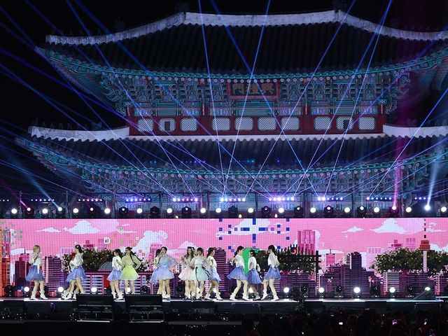 그룹 뉴진스가 21일 서울 종로구 경복궁 흥례문 특설무대에서 진행된 '2024 코리아 온 스테이지-뉴 제너레이션' 공연에 단아한 한복을 입은 채 멋진 공연을 펼쳤다.